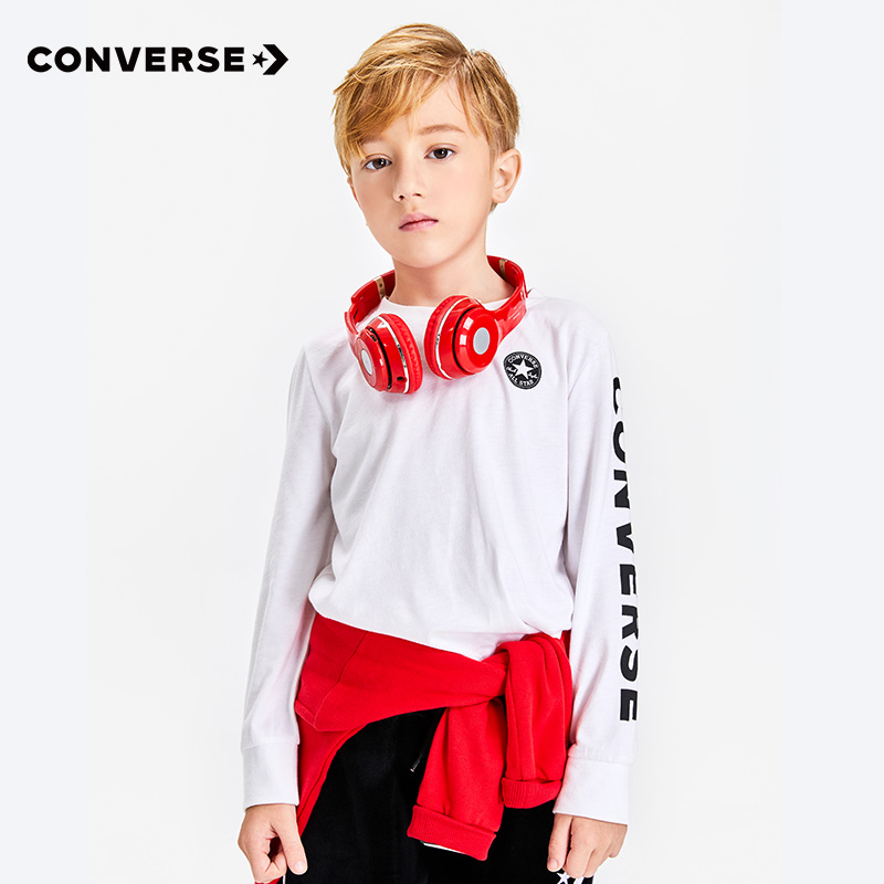 converse童鞋旗舰店Converse匡威童装秋季大童男童经典印花圆领长袖T恤舒适亲肤
