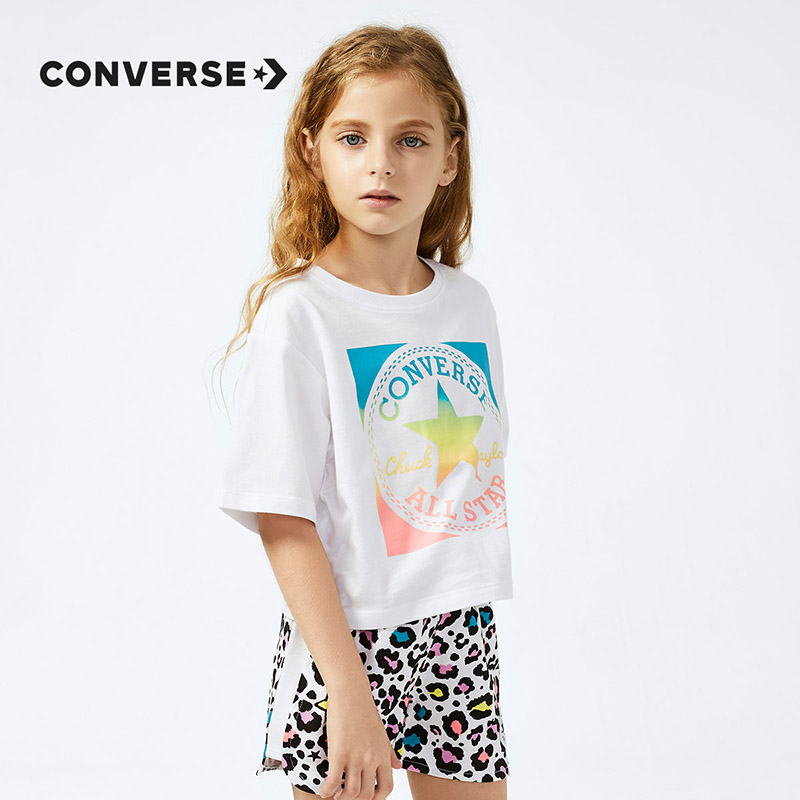 • converse童鞋旗舰店Converse匡威童装夏季新品女童中大童渐变色logo针织短袖T恤12/4