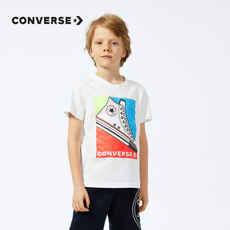 converse童鞋旗舰店Converse匡威童装夏季中大童纯棉小男童女童夏装儿童短袖T恤匡威经典帆布鞋图案装饰,具有极高的辨识度
